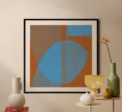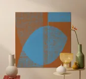Pittura astratta in azzurro su sfondo marrone chiaro