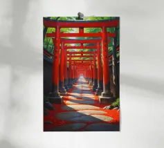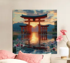 Sorgendo dalle acque del Mare Interno di Seto, il torii vermiglio di Miyajima sembra galleggiare - senza tempo, senza peso, sacro. Conosciuto come la Porta del Santuario di Itsukushima, accoglie il divino attraverso l'acqua e il vento. Questa immagine cattura la tranquilla dignità di uno dei luoghi più spirituali del Giappone, sospeso tra terra e cielo.