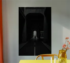 La fine di un viaggio o l'inizio di un altro? Questa fotografia potente e simbolica cattura una figura solitaria che si staglia contro una luce bianca e brillante alla fine di un lungo e buio passaggio. È un arrivo o una partenza? Un percorso verso il futuro o un'eco del passato? Capolavoro minimalista e di profonda riflessione, quest'opera d'arte è una meditazione sulle grandi transizioni della vita. Un'immagine cruda, bella e indimenticabile che conferisce alle vostre pareti un senso di profondo mistero e contemplazione.