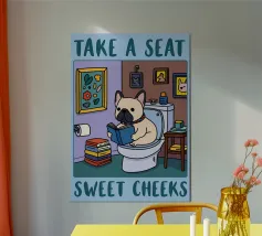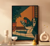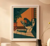 Rana in stile Ukiyo-e che legge un giornale su un water.