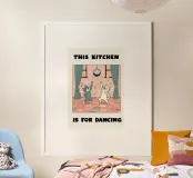 Aggiungete un sorriso e un po' di ritmo al vostro spazio: Questa cucina è per ballare. Una frase spensierata in un design pulito e moderno, perfetta per cucine, zone pranzo o accoglienti angoli per la colazione che celebrano la gioia, il movimento e i momenti quotidiani.