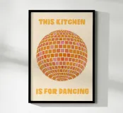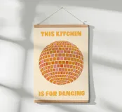Celebrate il cuore della casa con questo allegro disegno "Questa cucina è per ballare". Ispirato alle intramontabili riunioni di famiglia e alle chiacchiere notturne intorno ai fornelli, aggiunge un tocco giocoso e accogliente a qualsiasi spazio della cucina. Perfetto per chi crede che la cucina e il ballo vadano di pari passo.