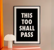 Ein Klassiker – mit einer bitterkomischen Wendung: „This too shall pass (like kidney stones)“. Dieses Poster kombiniert minimalistischen Look mit schwarzem Humor. Perfekt für alle, die Tiefen des Lebens lieber mit einem Lächeln (und Augenzwinkern) nehmen.