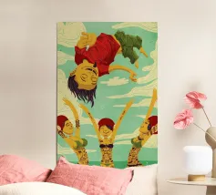 Questo disegno è stato ispirato da una scena che ho visto al mare: tre fratelli tatuati che nuotano con un grande unicorno galleggiante.