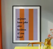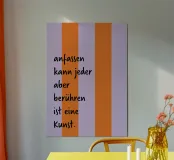 Aggiungi un tocco di stile al tuo spazio con questo poster minimalista. La frase ispiratrice 'anfasssen kann jeder aber berühren ist eine kunst' rende questo pezzo perfetto per l'ufficio o uno spazio di lavoro creativo. Stampa di alta qualità, ideale per chi cerca ispirazione quotidiana.