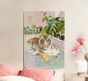 Le tigri sono animali affascinanti perché incarnano un perfetto equilibrio tra forza e grazia. Le loro caratteristiche strisce le rendono inconfondibili e simboleggiano forza, libertà e indipendenza. Anche in scene inaspettate, come in una vasca da bagno, emanano una serenità quasi regale che combina umorismo e grandezza. Questo mix di selvatichezza ed eleganza li rende una fonte inesauribile di ispirazione nell'arte e nel design.