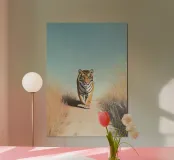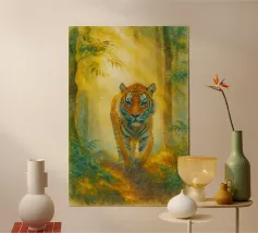 La tigre è un simbolo di libertà e di bellezza indomita. Il suo aspetto maestoso e la sua andatura fluida la fanno sembrare un re della natura selvaggia. Con i suoi salti potenti e i suoi riflessi rapidi, dimostra un impressionante controllo del corpo. Il suo disegno inconfondibile è un segno di unicità. Nell'arte, simboleggia il coraggio, la determinazione e l'energia selvaggia della vita.