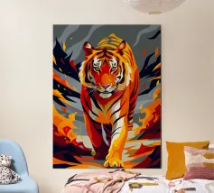 Le tigri sono maestri di mimetizzazione e adattamento. Le loro strisce non sono solo uniche, ma anche perfettamente adattate all'ambiente. Nonostante la loro forza ineguagliabile, cacciano con pazienza e strategia. Il loro sguardo riflette la loro natura indomita. Nell'arte, simboleggiano la ferocia, l'intelligenza e la libertà di seguire la propria strada.
