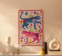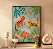 Questa splendida illustrazione presenta dettagli intricati di una tigre e di una pantera, catturando l'essenza di queste due maestose creature.