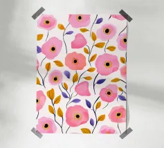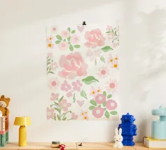 Motivo di fiori rosa acquerellati. Ideale per l'arredamento di neonati e camerette.