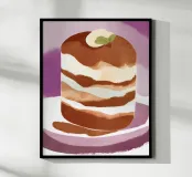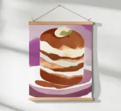 Colourful watercolour of a tiramisu. Generated with AI (Canva).
