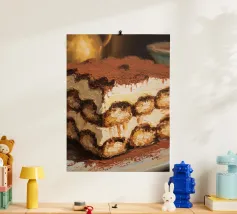 Acquerello colorato di un tiramisù. Generato con AI (Canva).