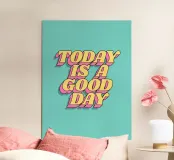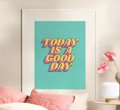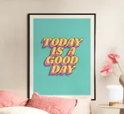 Ravvivate qualsiasi spazio con questa vivace stampa tipografica che riporta la scritta "Today is a Good Day" in grassetto giallo e rosa in 3D su un vivace sfondo turchese. Il design giocoso combina l'estetica nostalgica degli anni '80 con l'ottimismo moderno, creando un allegro punto focale per soggiorni, uffici o cucine. L'accattivante palette di colori e il testo dimensionale aggiungono profondità ed energia, rendendolo ideale per l'arredamento della casa o per essere regalato in occasione di compleanni, inaugurazioni o anniversari. Un perfetto promemoria per abbracciare la positività, questa stampa fonde il fascino retrò con la passione per la vita.