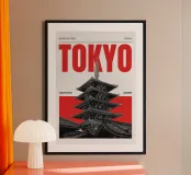 Scopri la bellezza di Tokyo con questa stampa artistica incorniciata in legno, perfetta per aggiungere un tocco moderno al tuo soggiorno o studio. Il design audace rappresenta il fascino della cultura giapponese, ideale per appassionati di viaggi e arte.