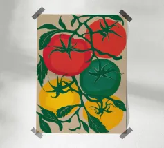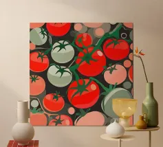 Il design allegro e colorato presenta un motivo di pomodori fresco e appetitoso.