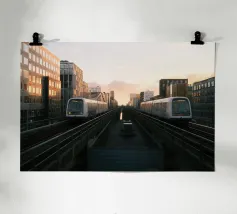 train in sunset poster