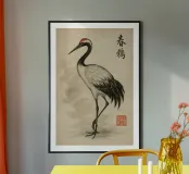 Una gru in bilico si erge su esili zampe su uno sfondo di pergamena dalla texture sottile, con il piumaggio lavato a inchiostro e reso con delicati tratti di carboncino. La corona rosso vivo e i sottili caratteri calligrafici evocano la classica arte dei rotoli dell'Asia orientale. Stampato su carta opaca d'archivio di prima qualità, ogni linea di piuma e sfumatura tonale rimane vivida nel tempo. Ideale per ingressi, sale da pranzo o angoli di meditazione, questa elegante stampa conferisce agli interni moderni un equilibrio sereno, un'eredità culturale e una grazia senza tempo.