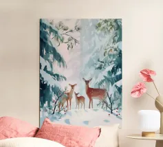 L'elegante illustrazione presenta tre graziosi cervi su uno sfondo morbido.