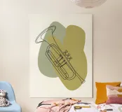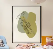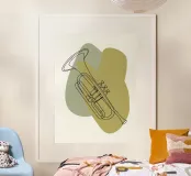 Catturate la bellezza della musica e dell'arte in un unico disegno! Questa illustrazione dettagliata di una tromba presenta dettagli sorprendenti, perfetti per gli amanti della musica e dell'arte.