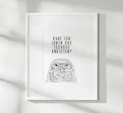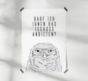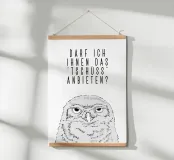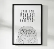 Scopri la stampa artistica in cornice di legno con il grumpy gufo "Tschüss". Un pezzo d'arte divertente perfetto per dare un tocco di umorismo e personalità ai tuoi spazi.