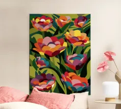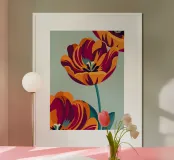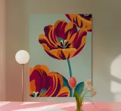 Questa dettagliata ed elegante illustrazione di tulipani aggiungerà un tocco di eleganza e serenità al vostro spazio.