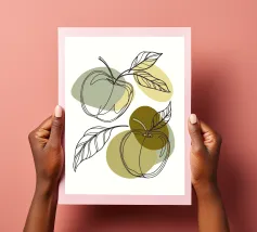 Illustrazione "Due mele": Elegante semplicità! Questo disegno minimalista presenta tre mele con dettagli sottili e naturali.