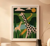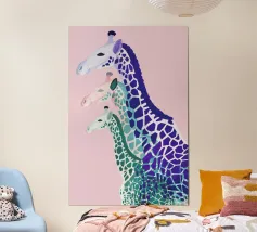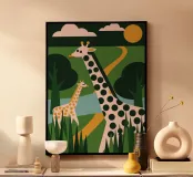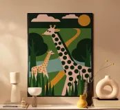 Scoprite la bellezza della natura selvaggia africana nella nostra ultima collezione, Two Giraffes! L'affascinante illustrazione presenta due graziose giraffe, creando un'atmosfera calma ed elegante.