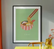 Porta un tocco di colore e allegria nella tua cucina con la stampa artistica in cornice di legno "Udon". Questo pezzo unico rappresenta un piatto di udon vibrante, ideale per chi ama la cucina giapponese e il design moderno. Perfetta per decorare il tuo spazio o come regalo per gli amanti del cibo.