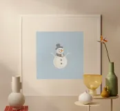Il pupazzo di neve, completo di sorriso amichevole, naso a carota e braccia a ramoscello, aggiunge un tocco di allegria a una serena atmosfera invernale, perfetta per le decorazioni stagionali.