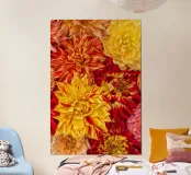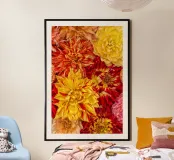 Un'esplosione di sole e calore - Dalie giallo/arancio poster con telaio in legno