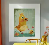 Un grazioso e allegro pulcino di peluche in piedi felicemente poster