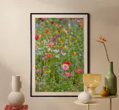 mmersa nella bellezza mozzafiato di un campo colorato e pieno di fiori selvatici, dove la tavolozza della natura prende vita in una vibrante esibizione di tonalità: Una sinfonia di colori - I fiori selvatici in una varietà di tonalità, dai tenui pastelli ai rossi ardenti, creano una miscela armoniosa che abbaglia l'occhio. Bellezza selvaggia - La disposizione naturale e non pianificata dei fiori conferisce al paesaggio un fascino organico e libero.