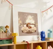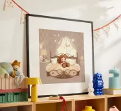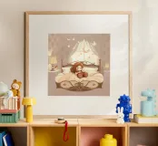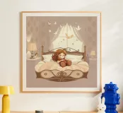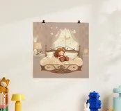 Una giovane ragazza dorme serenamente in un'accogliente camera da letto poster con telaio in legno