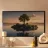 Una vista mattutina di un albero solitario in cima a una piccola isola poster con telaio in alluminio