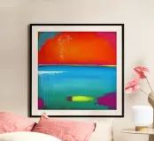 Una sera in riva al mare - Arte astratta arancione e blu poster
