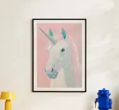 Un simbolo intramontabile di meraviglia: l'unicorno, gentile, magico e sempre un po' misterioso. Questo disegno cattura il fascino della fantasia con linee morbide e un pizzico di scintillio. Perfetto per le nursery, le camere da letto o per chiunque ami un tocco di magia sulla propria parete.