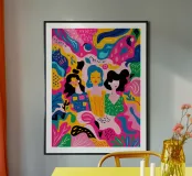 Questa vibrante opera d'arte astratta celebra l'unità e la diversità con una composizione di più figure femminili stilizzate. Le donne, rese in un tripudio di colori e motivi gioiosi, si intrecciano in una danza dinamica di unione, creando una dichiarazione visiva potente ed edificante.