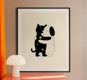 Cane e gatto amore Disegno lineare minimalista