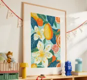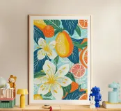 Una frenesia tropicale di colori e forme: Questo motivo combina l'illustrazione botanica con un tocco di design retrò. Mango succoso, agrumi brillanti e fiori bianchi lussureggianti danzano su un fresco azzurro: un omaggio alla leggerezza estiva e all'immaginario ornamentale degli anni '60. La rappresentazione stilizzata ricorda i motivi tessili dipinti a mano dei Caraibi o del Sud-Est asiatico. Ideale per gli interni che hanno bisogno di irradiare pura gioia di vivere - potente, giocosa ed elegante allo stesso tempo. Una vera e propria dichiarazione per tutti coloro per i quali la leggerezza dell'essere è importante.