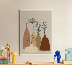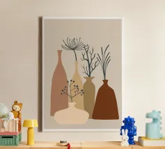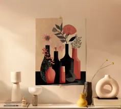vasi bottiglie rami fiori secchi design minimalista arredamento per la casa colori neutri composizione floreale botanico linea d'arte sagome arredamento d'interni natura toni della terra piante stilizzate ornamentale forme di vasi natura morta estetica della casa moderna motivi vegetali