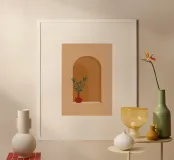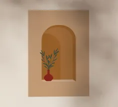 arco-finestra vaso pianta verde arredamento interni arredamento minimalista botanico design d'interni scaffale finestra-angolo luce naturale silhouette arredamento moderno ceramica fogliame spazio vuoto tranquillo contrasto natura morta