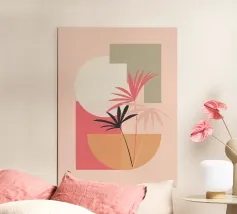 foglia di palma vaso forme geometriche cerchio cerchio arancione forma verde forme organiche pianta astratta composizione elementi minimalisti modelli di linee forme sovrapposte contrasto di colore spazio negativo silhouette di piante forme semplici toni della terra elemento decorativo design moderno motivo di sfondo