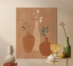 vaso foglie piante sole ombre ramo terracotta fogliame botanico silhouette minimalista texture curva rotonda gambo organico terroso natura cielo luce