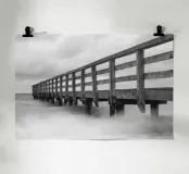 Un molo nel mare in tempesta in autunno sul Mar Baltico