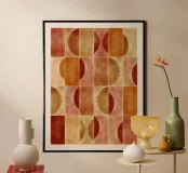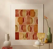 Questo disegno è caratterizzato da calde tonalità autunnali e audaci motivi geometrici, perfetti per aggiungere un tocco di stile moderno ed energia, portando la bellezza dell'autunno all'interno senza sforzo. L'armoniosa fusione di colori e forme invita a un senso di calore e creatività.