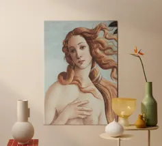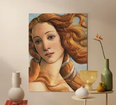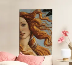 La nascita di Venere: bellezza classica in primo piano". Questo disegno mostra un primo piano dell'iconica "Nascita di Venere" di Botticelli, che affascina con i suoi dettagli raffinati e le eleganti ciocche di capelli dorati. L'eleganza senza tempo e l'espressione perfetta di Venere rendono questa immagine una vera e propria opera d'arte. Ideale per gli amanti dell'arte come poster, decorazione murale o per applicazioni moderne che reinterpretano l'arte classica.