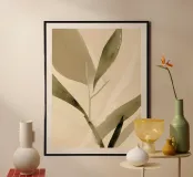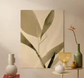 Questa astrazione botanica minimale evoca la sottile vitalità della natura attraverso pennellate ariose e verdi tenui. La delicata stratificazione di foglie traslucide invita alla riflessione, rendendolo un pezzo ideale per spazi sereni, spa e ambienti di benessere.