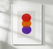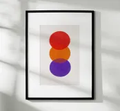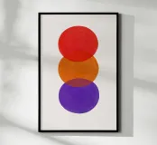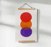 Tre cerchi, tre colori, un equilibrio tranquillo: questo poster moderno mostra una composizione verticale di aree di colore sovrapposte e trasparenti nei colori rosso, arancione e viola. Le delicate sovrapposizioni creano profondità e armonia: ideale per interni moderni, spazi di lavoro creativi o pareti artistiche minimaliste con un accento di colore.