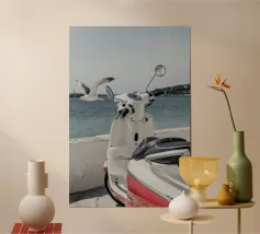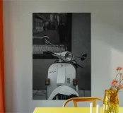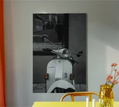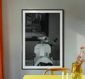 Scopri l'eleganza italiana con questa stampa artistica incorniciata in legno della Vespa. Perfetta per decorare il tuo soggiorno o la tua camera, questa opera d'arte aggiunge un tocco vintage e nostalgico a qualsiasi ambiente. Un regalo ideale per gli amanti delle moto e della cultura italiana.