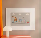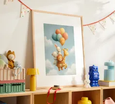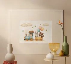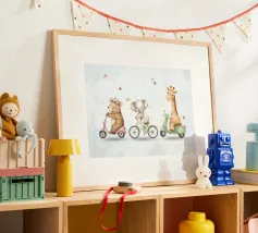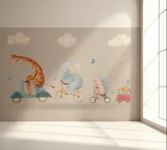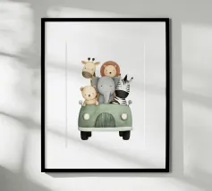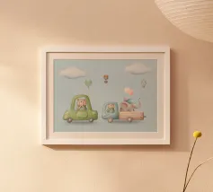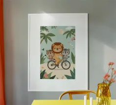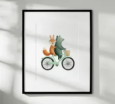 Questa deliziosa opera d'arte per bambini cattura una scena stravagante di adorabili animali in tenui toni beige, che cavalcano gioiosamente le loro biciclette e si godono una giornata di sole. Circondata da dolci paesaggi e dettagli giocosi, quest'opera dà vita a un mondo in cui l'immaginazione regna sovrana. Gli animali sembrano ridere e divertirsi come matti, invitando i piccoli spettatori a unirsi al loro viaggio giocoso. Perfetta per illuminare la stanza o l'area giochi di un bambino, questa opera incoraggia l'amore per la natura e le avventure all'aria aperta, ispirando sogni di divertimento e amicizia senza fine.